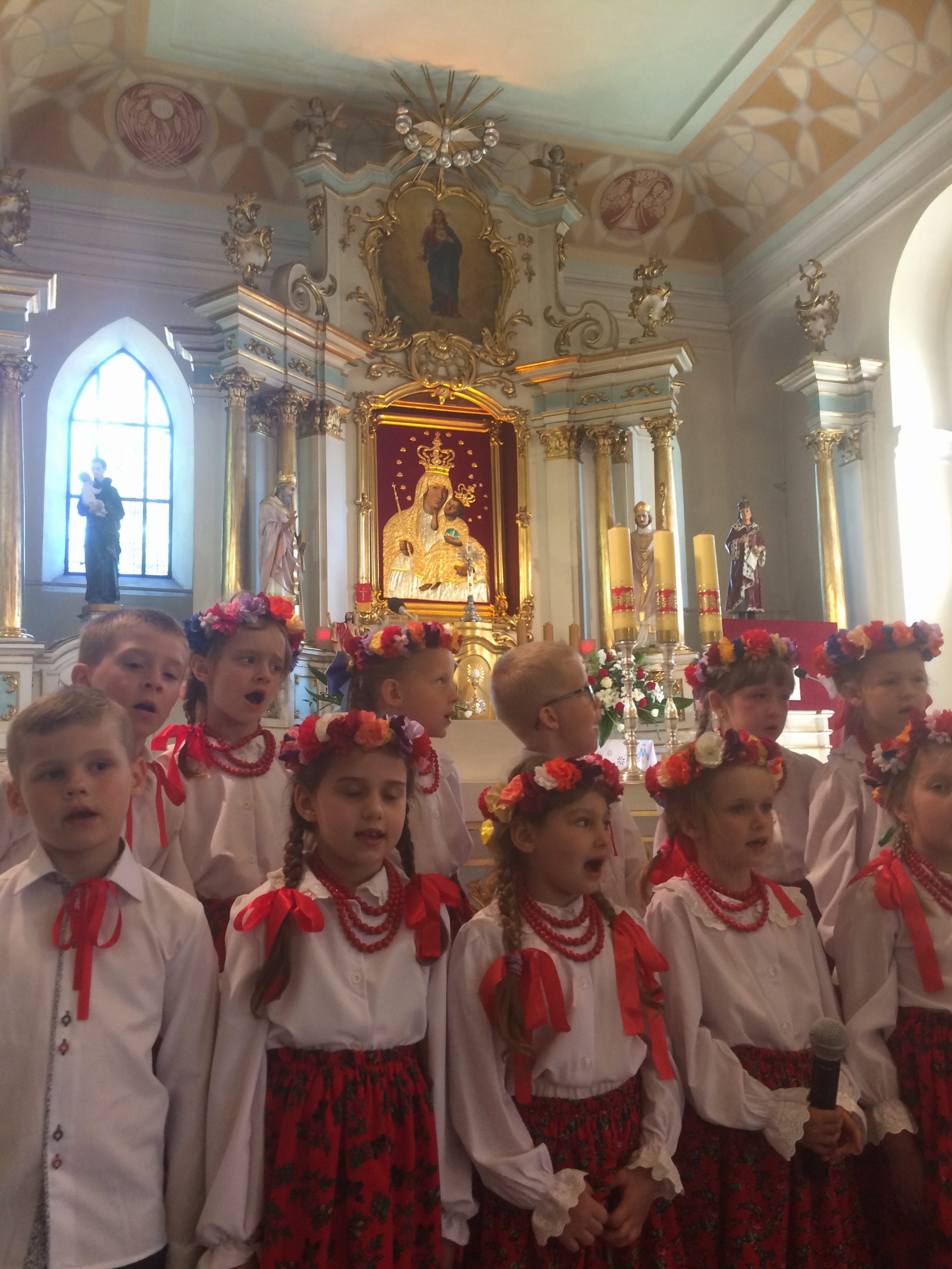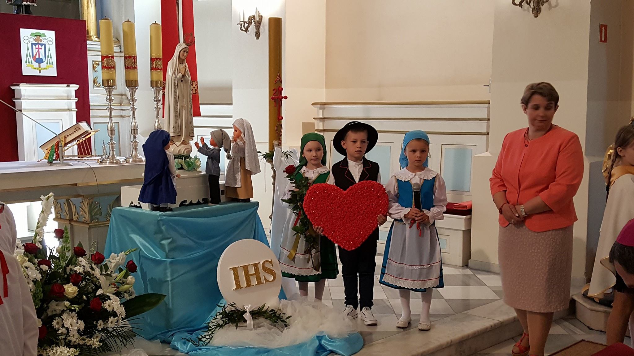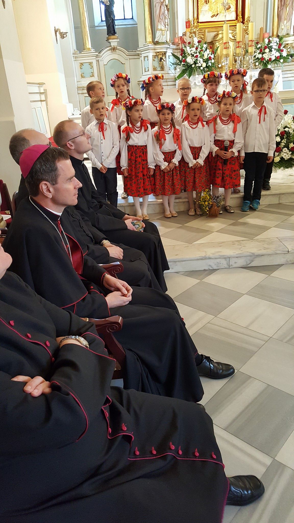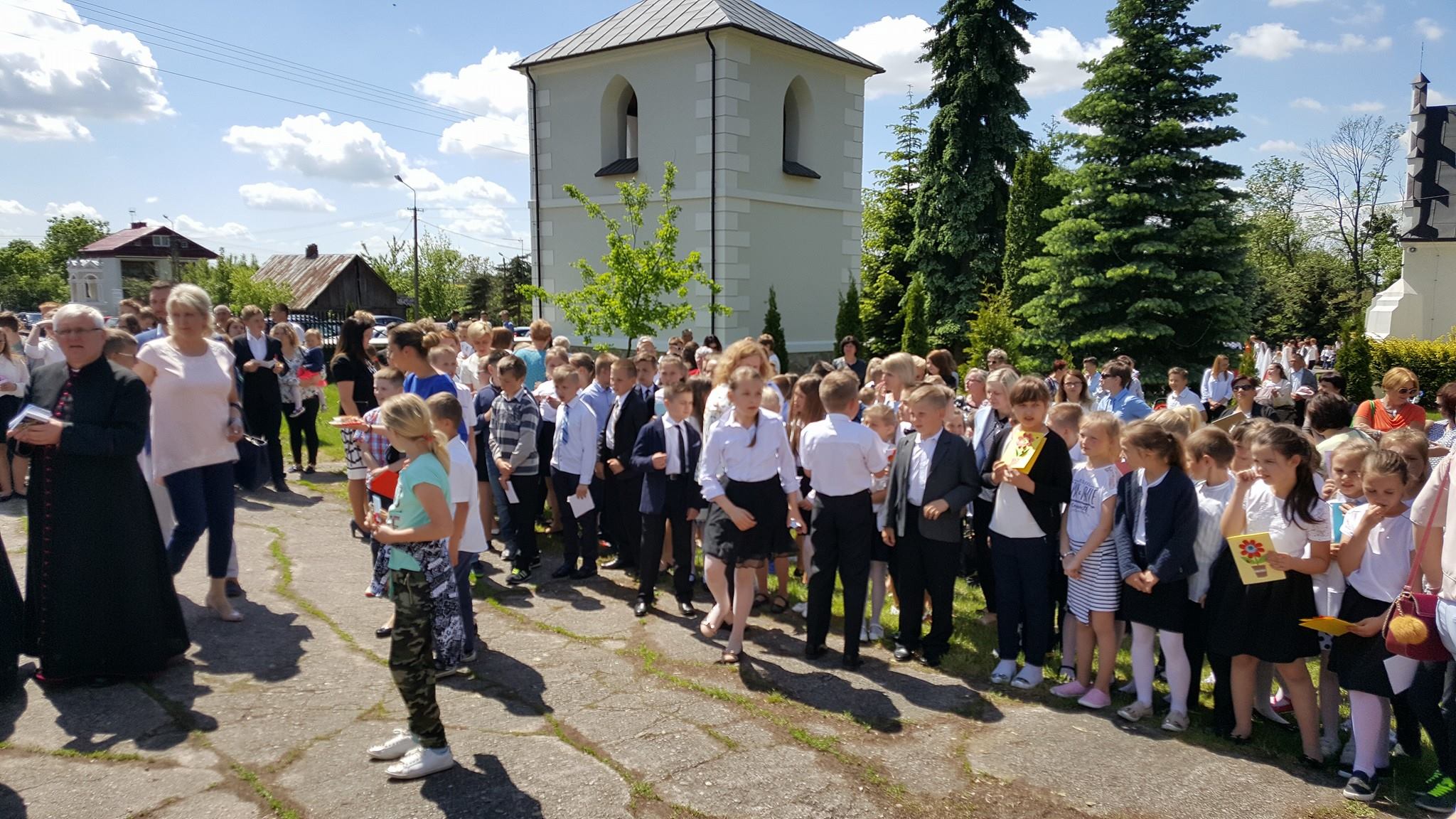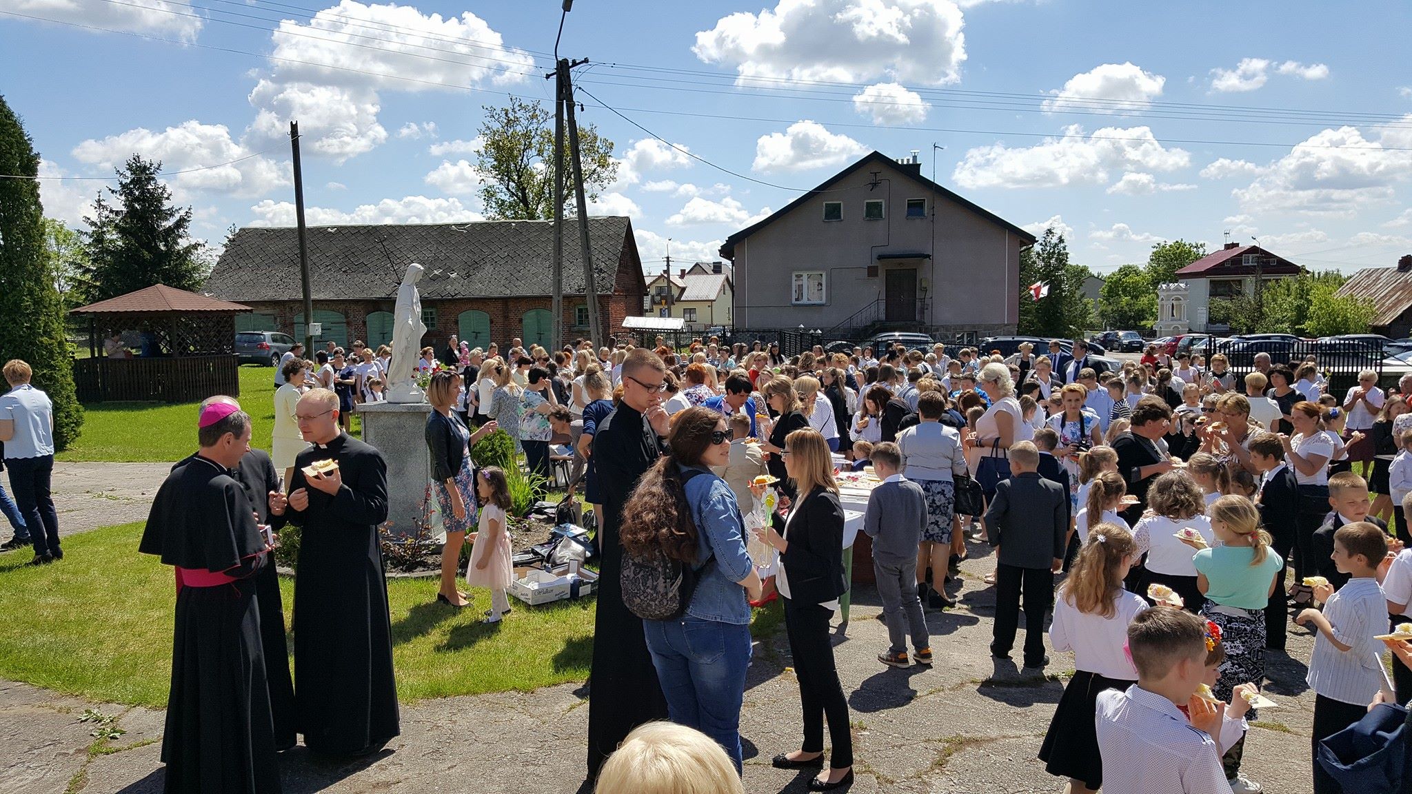 Ksiądz Biskup Mirosław podziękował wszystkim Nauczycielom i Katechetom za trud wychowania, a dzieci zachęcił do jeszcze większej wdzięczności rodzicom, po czym wszystkim zgromadzonym rozdał przygotowane specjalnie na tę okazję obrazki z wizerunkiem Matki Boskiej Karniewskiej z 1649 r. oraz Matki Boskiej Fatimskiej z okazji Roku Fatimskiego 100-lecia Objawień.