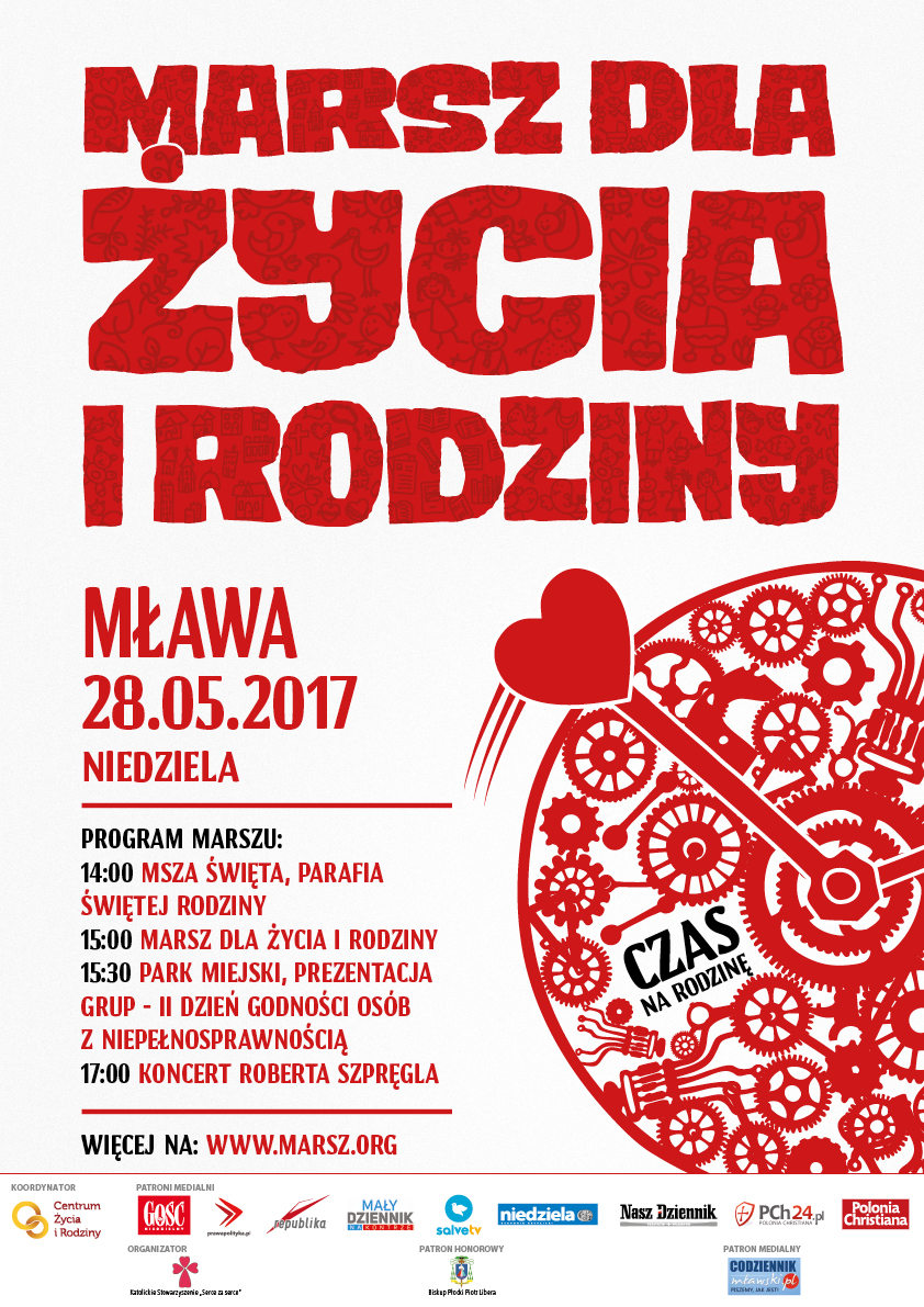 Dn. 28 maja miał miejsce II Marsz dla Życia i Rodziny w Mławie. Uczestniczyło w nim ok. 200 osób. Wydarzenie połączono z obchodami II Dnia Godności Osób z Niepełnosprawnością, inicjowanego przez mławskie Katolickie Stowarzyszenie Wspierania Dzieł Miłosierdzia i Ewangelizacji „Serce za Serce”.